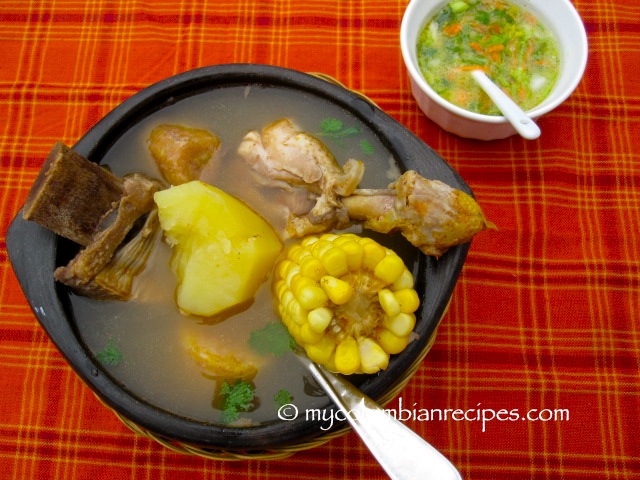 1. En una olla grande, coloque las costillas de ternera, costillas de cerdo, pollo, maíz, sal Alinos, caldo de pollo y plátano verde. Agregar el agua y llevar a ebullición, tapar y bajar el fuego a medio y cocinar durante unos 45 minutos.